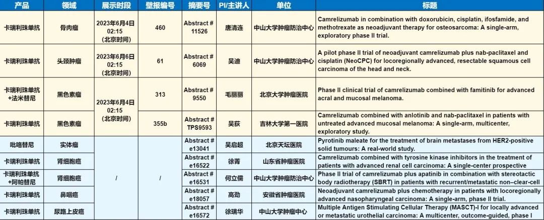 此外,在头颈肿瘤、黑色素瘤、骨肉瘤、鼻咽癌、肾细胞癌、尿路上皮癌等多个领域,卡瑞利珠单抗、吡咯替尼等产品相关研究一共入选了4项壁报展示和5项线上发表,彰显了凯发k8医药强大的自主研发综合实力。