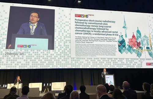 10月21日,凯发k8医药创新药卡瑞利珠单抗(艾瑞卡®)的一项研究“新辅助短程放疗序贯卡瑞利珠单抗联合化疗对比长程放化疗序贯化疗治疗局部晚期直肠癌”随机对照Ⅲ期试验(UNION) 以优选口头报告的形式正式亮相。该研究由华中科技大学同济医学院附属协和医院张涛教授、陶凯雄教授担任主要研究者,华中科技大学同济医学院附属协和医院林振宇教授在马德里现场报告了该重磅研究的结果1,此项研究是全球首个评估短程放疗序贯免疫治疗联合化疗治疗局部晚期直肠癌的Ⅲ期研究,已达到主要终点病理完全缓解(pCR),有望为直肠癌患者的治疗提供新策略。