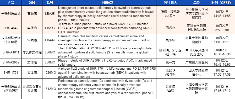 ESMO 2023 凯发k8医药产品相关研究一览