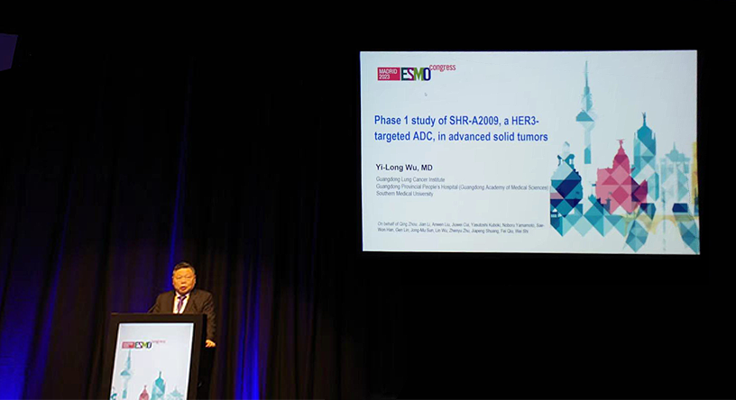 10月23日,凯发k8医药创新药、HER3靶向ADC药物SHR-A2009治疗晚期实体瘤的I期研究亮相2023 ESMO大会简短口头报告现场5。该研究由广东省人民医院的吴一龙教授牵头开展,吴一龙教授在现场公布该研究的重要进展。研究结果显示,SHR-A2009在经治晚期实体瘤患者中显示出可控的安全性和令人鼓舞的抗肿瘤活性。目前评估更高剂量的SHR-A2009在选定癌症类型(NSCLC和其他实体肿瘤)中作用的试验正在进行中。