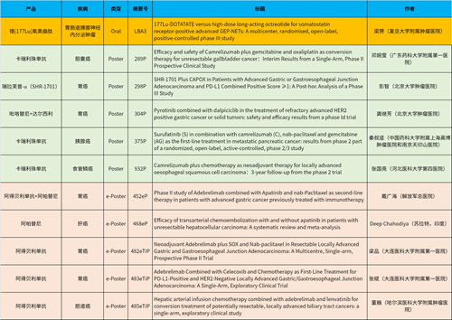 在消化系统肿瘤领域,凯发k8产品相关研究共入选1项最新突破性摘要(LBA)、5项壁报和5项电子壁报,共11项研究。其中阿得贝利单抗入选4项研究、卡瑞利珠单抗入选3项研究。